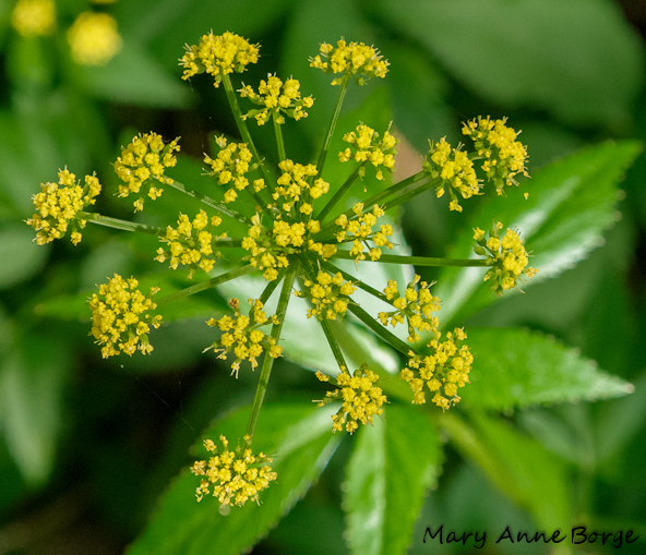 The bright yellow flower umbels help identify Golden Alexander as a member of the parsley or carrot family, and a food plant for the caterpillars of Black Swallowtail butterflies.