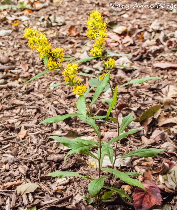There are even goldenrod species that can be used to light up shade gardens. Wreath or Blue-stemmed Goldenrod (Solidago caesia) has a gracefully arching architecture often seen along woodland paths. Zigzag Goldenrod (Solidago flexicaulis), true to its name, has a zigzagging stem graced with flower clusters at the top and where the leaves meet the stem. Both of these species do well in shade to part shade.