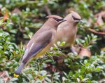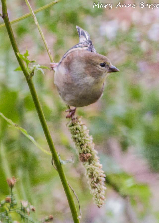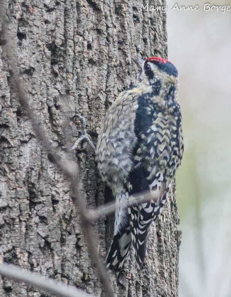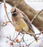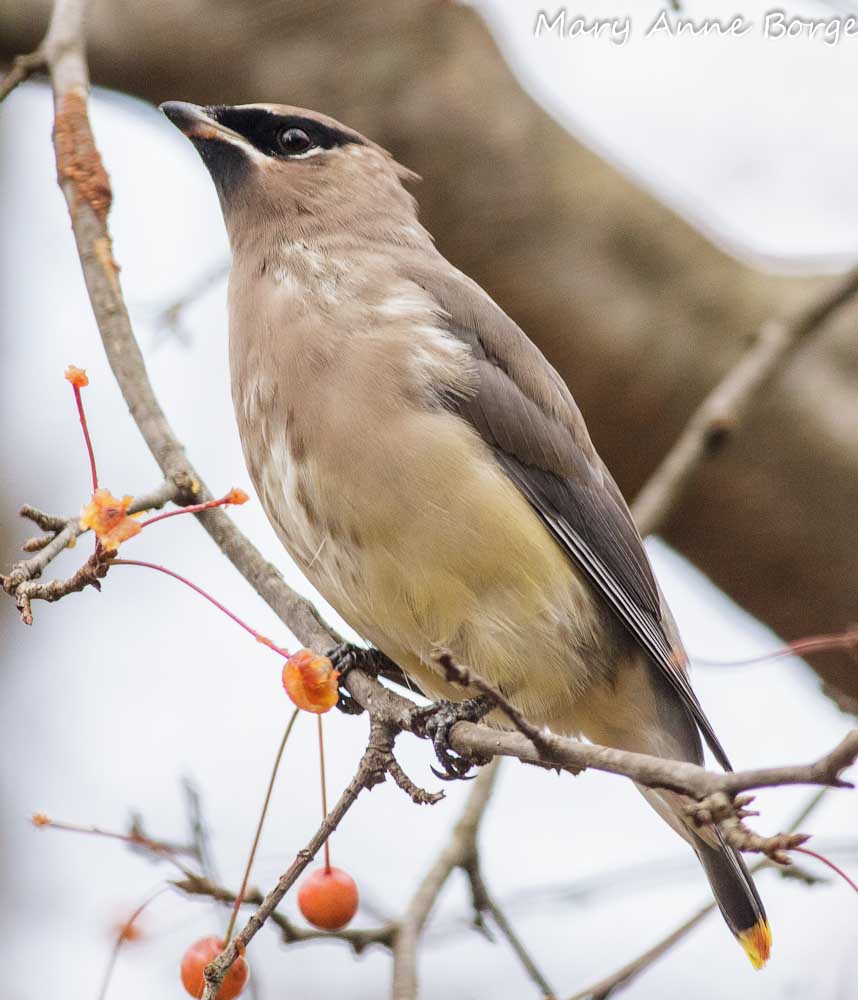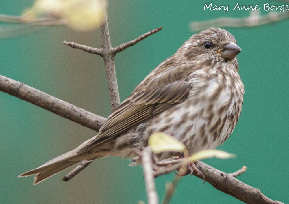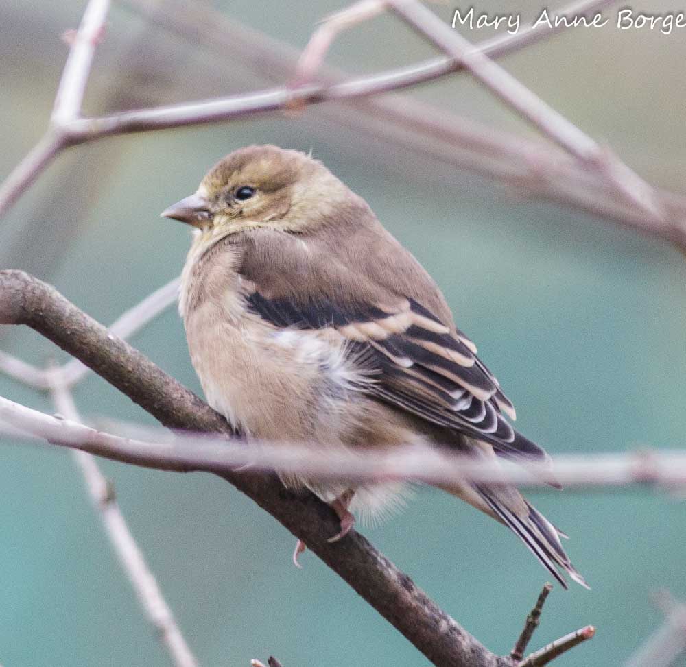 All of our year-round residents visited, undeterred by the weather.  Visiting Pine Siskins ganged up to empty our feeders in less than a day, chasing larger competitors away.  Even a female Purple Finch stopped by, and Juncos and White-throated Sparrows returned for the winter while the power was out.  Cedar Waxwings swooped in twice, eating any fruit they could find.