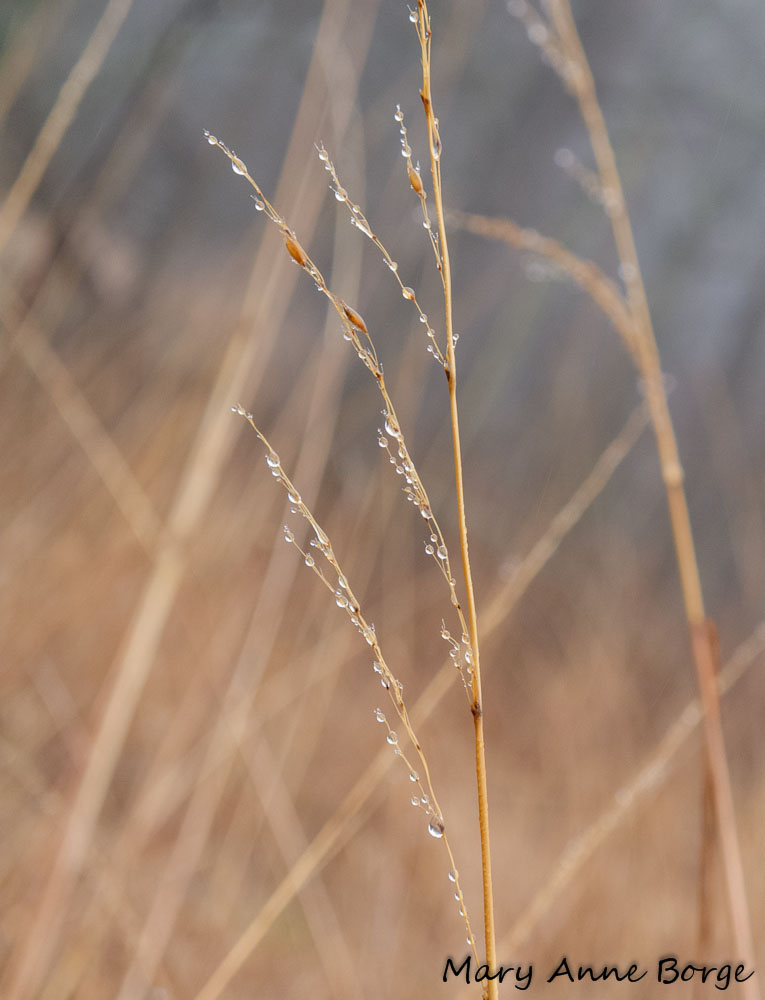 …where the grasses were beaded with water droplets.