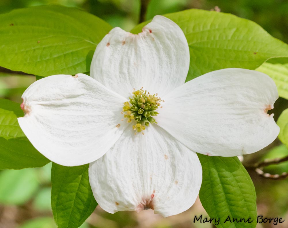 May brings blossoms at all levels of our woodland garden. Tuliptrees flower as high as their canopy, attracting bees with their copious nectar. Flowering Dogwood’s white bracts and Blackhaw Viburnum’s large round clusters of tiny white flowers light up the understory.