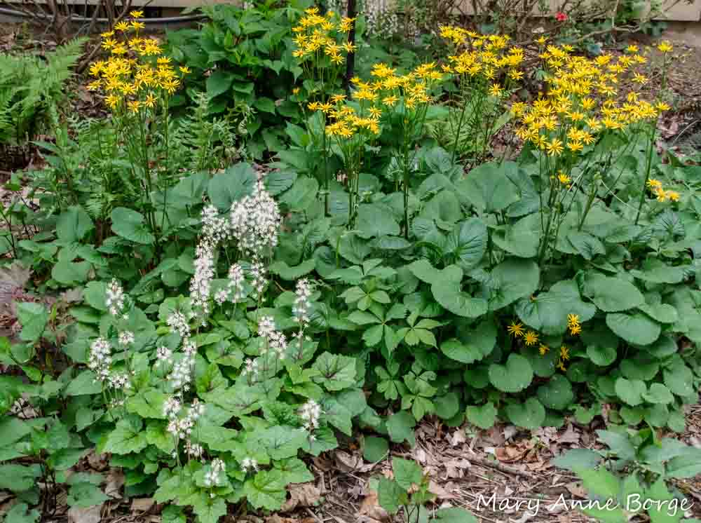Spring Garden – Foamflower, Golden Ragwort, Virginia Creeper, Christmas Fern
