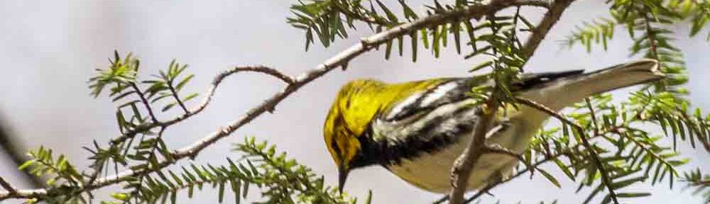 Black-and-white Warblers appeared, and a Blue-headed Vireo was busy hunting for lunch, moving from branch to branch, tree to tree. A Black-throated Green Warbler peered out from the shelter of a Hemlock tree.
