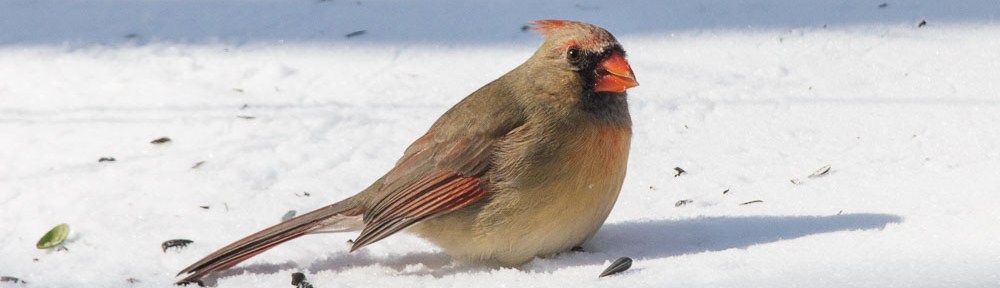 The ground has been solidly snow covered for weeks.  As a result, traffic at bird feeders is heavy, with birds often emptying our feeder in less than a day.  It’s especially tough on birds that feed on the ground, like Cardinals,