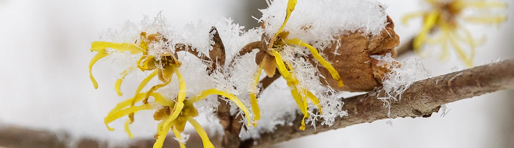 It’s well into December, and American Witch-hazel (Hamamelis virginiana) is still in bloom, brightening our winter shade garden and the woodland understory.