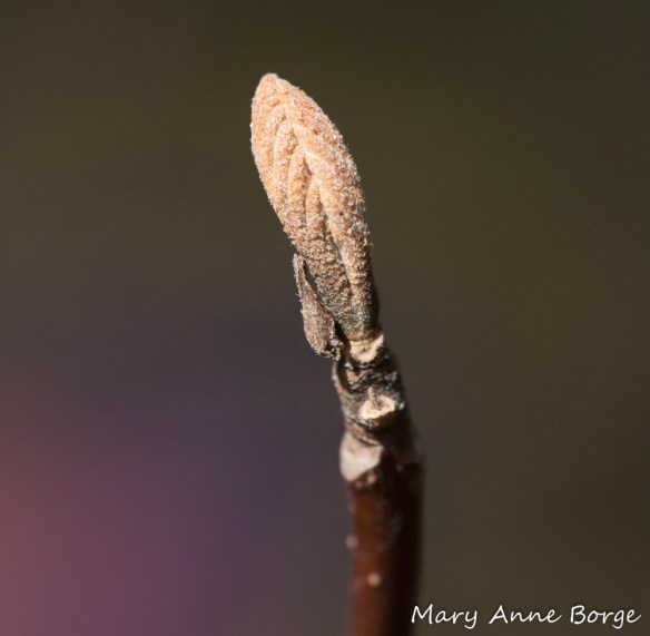 Hobblebush Viburnum (Viburnum lantanoides) ‘naked’ leaf buds, a term that refers to buds without protective scales.