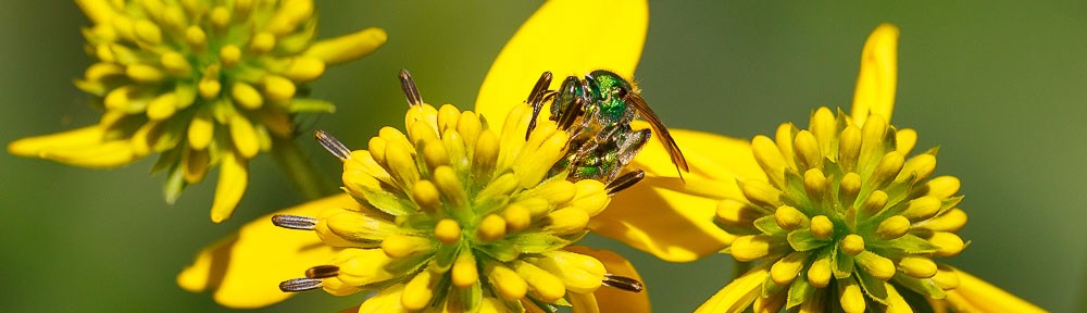 Sweat Bees and Small Carpenter Bees also visit Wingstem flowers for the nectar and pollen banquet they provide.