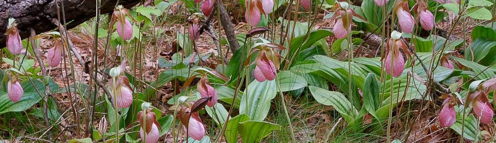 Pink Lady’s Slipper orchids (Cypripedium acaule)