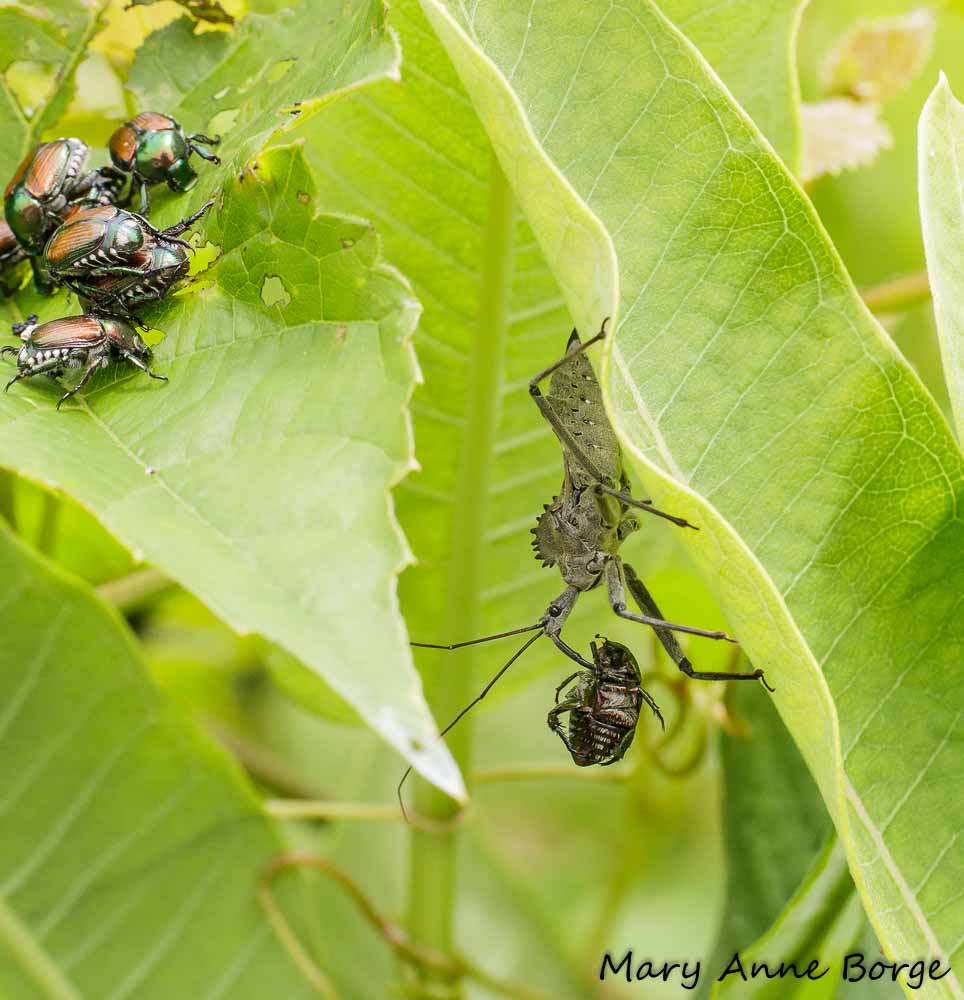 Pollen is an important part of a bee’s diet, so a visiting queen Bumble Bee would also love to be able to harvest and eat the orchid’s pollen in addition to drinking nectar. But Showy Orchis pollen is not dispersed in loose grains that can be accessed easily by a pollinator. Instead, its thousands of tiny pollen grains are packaged in pollinia, which are a little like tiny saddle bags of pollen. Milkweed pollen is also packaged this way.