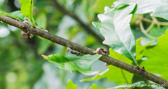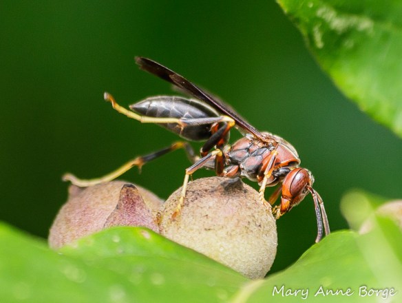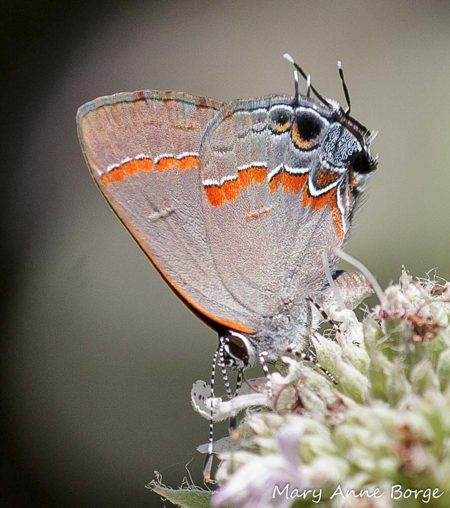As Showy Orchis (Gaelaris spectabilis) flowers age, their hoods lift, revealing the reproductive parts that were hidden. In this photo, the reproductive parts viewed together look like a boxer whose outsized arms and hands are raised in victory. What appears to be the boxer’s body is the rostellum, the stigma is below, as if it were a podium hiding the rest of the boxer’s body. The stamens (male reproductive parts) were enclosed in what look like arms, the pollinia in the ‘gloves’.