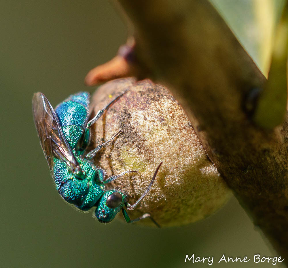 The pollinia is now attached to the bee in the perfect position to deposit on the stigma of the next Showy Orchis flower she visits. She will unwittingly aid Showy Orchis in cross-pollination.