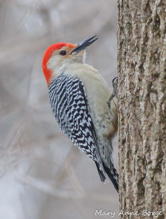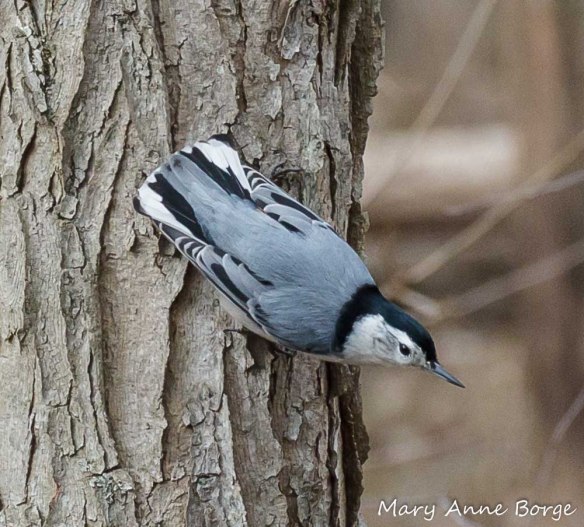 The purple hood-like structure at the top of the flower is made up of three sepals abutting each other. The sepals acted as bud scales that protected the flower before it opened; in bloom, the sepals are part of the showy floral display, and at the same time they continue to protect the flower’s reproductive parts. Each flower also has three petals, two of which are tucked up on the underside of the hood, the third is the long, white petal hanging down below the hood. This petal is called a lip or labellum, and makes a good landing platform for visiting insects.