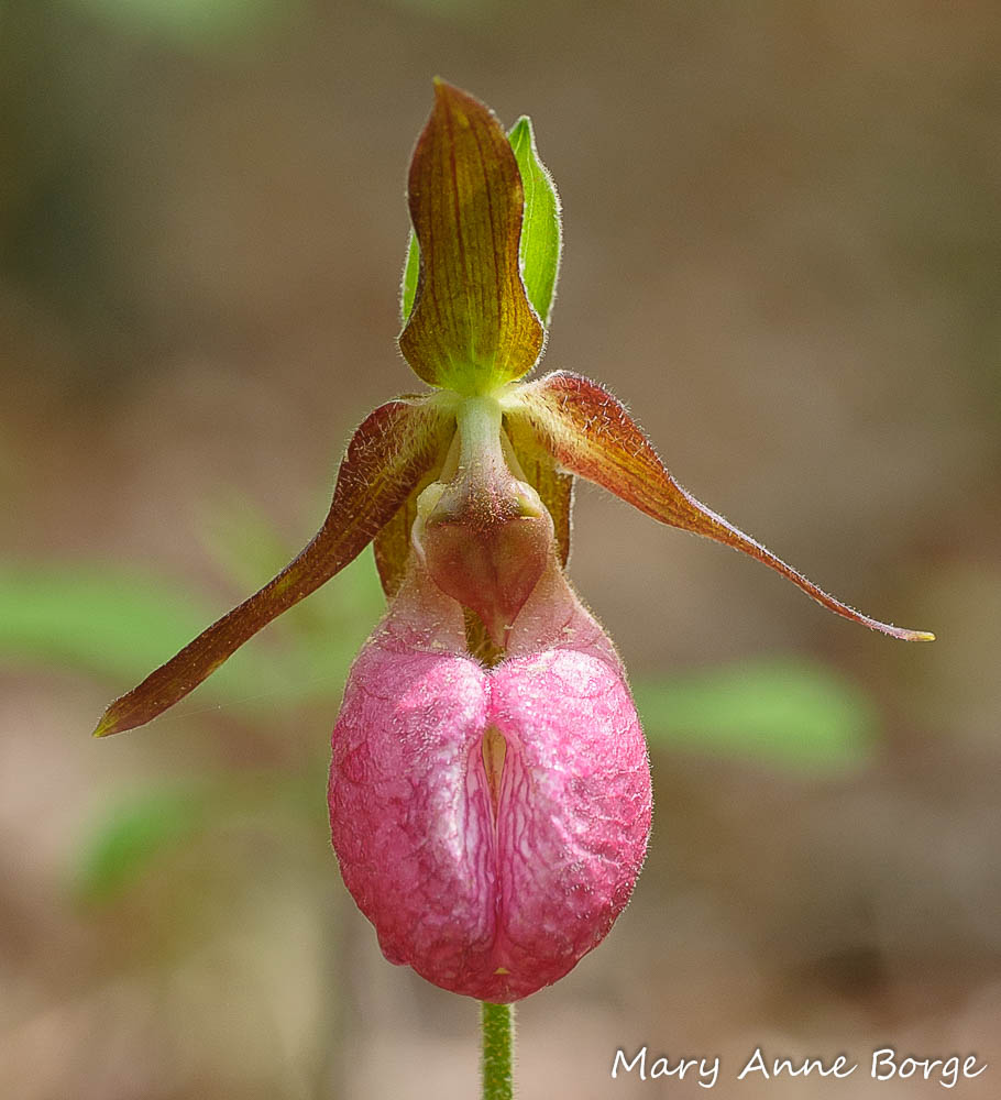 Pink Lady’s Slipper (Cypripedium acaule). A deceptively attractive flower that doesn’t deliver a reward to pollinators