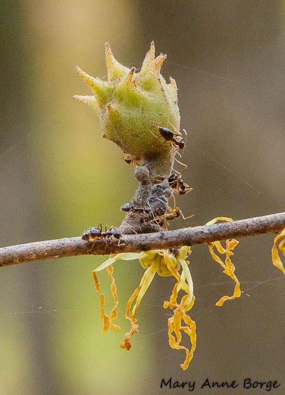Pollinated flowers produce a fruit capsule that develops under the protection of the expanding leaves. The capsule splits open when it’s ripe, making the seeds inside available for dispersal. Like many early spring blooming wildflowers, Bloodroot has evolved to partner with animals, in this case ants, to disperse its seeds. Each seed has a packet of food called an elaiosome attached. The elaiosome’s chemical make-up mimics the nutrition of insects, a preferred food for ants. The ants take the seeds to their homes, where they eat the elaiosome and discard the seed, effectively planting it.