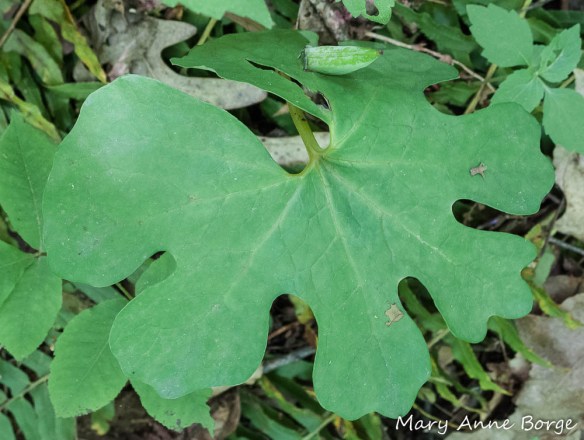 Bloodroot (Sanguinaria canadensis) leaf in late spring. the leaf will continue to photosynthesize for much of the summer.
