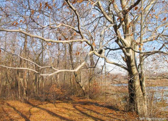 American Beech’s long, sharply pointed copper-colored buds are another distinctive winter identification feature.