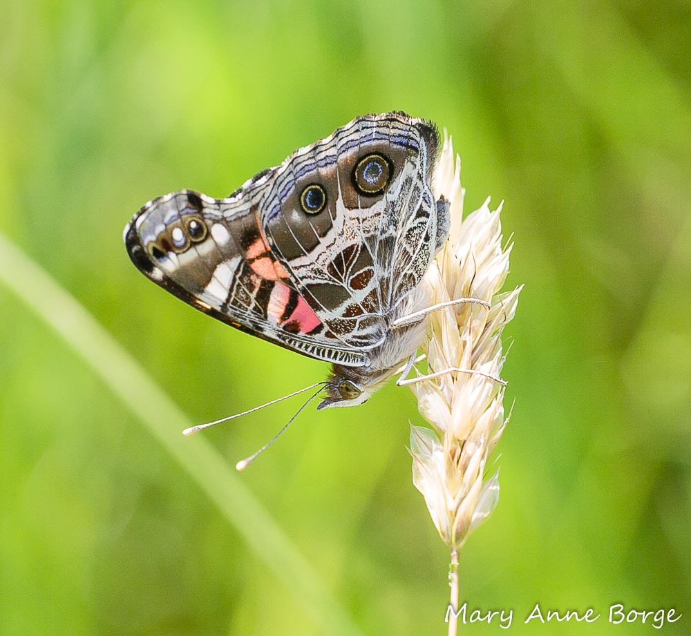 American Lady butterflies specialize on some Aster family members as food for their caterpillars, including Plantain-leaved Pussytoes, other Antennaria species, Pearly Everlastings (Anaphalis margaritacea), and a few others.