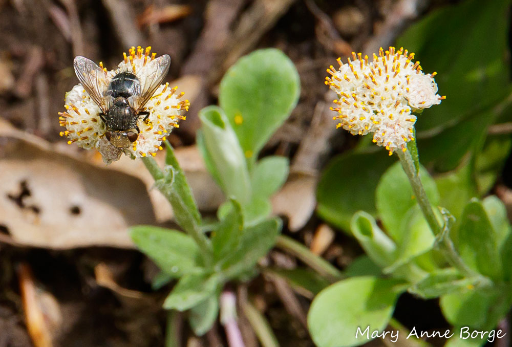 Since the Tachinid Flies were the only species I saw foraging on both male and female flowers, they are the most likely to have helped this particular colony of Plantain-leaved Pussytoes with pollination.
