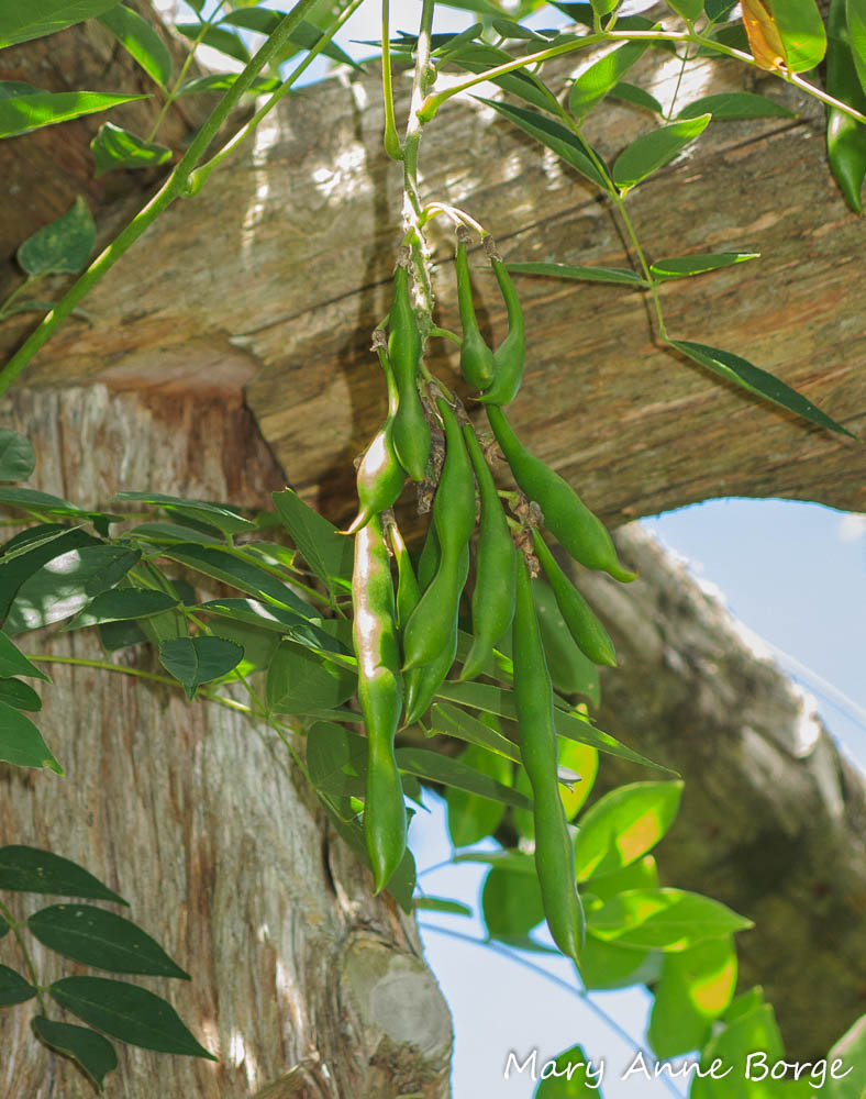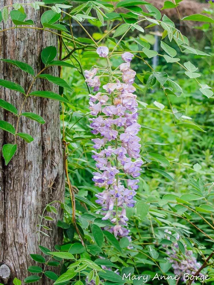 American Wisteria (Wisteria frutescens) is another favorite of Silver-spotted Skippers. It is a deciduous vine with long hanging clusters of violet flowers in early summer, great for use on an arbor or fence. If its flowers are pollinated, they are replaced by long pea pods later in the season.