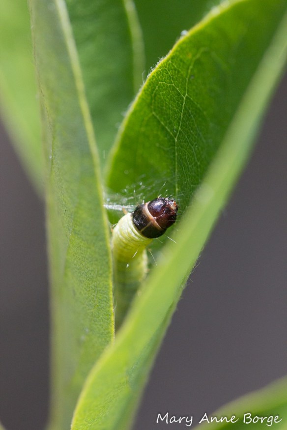 So what’s the connection to peas? While Silver-spotted Skipper butterflies drink nectar from many different plants, it’s their caterpillars that ‘eat their peas’. Silver-spotted Skipper caterpillars specialize on certain members of the Pea (Fabaceae) family, including Black Locust (Robinia pseudoacacia) trees, and several herbaceous (not woody) plants called Tick-trefoils (Desmodium species). The caterpillars typically munch on the foliage, flowers or buds of these plants, but they do it in such a discreet way that you would only notice if you were looking for it.