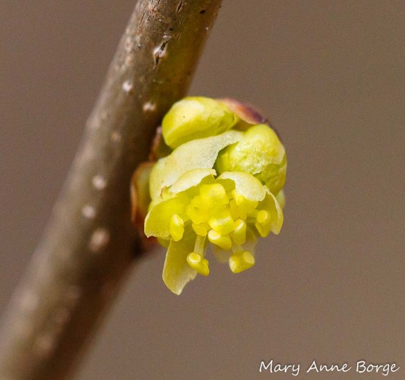 Leatherwood (Dirca palustris) is an early blooming shrub whose flower buds come with their own ‘fur’ coat, just in case the temperatures take a tumble. If the temperatures are warm, a lovely fragrance that even humans can detect wafts many feet away from the flowers. When the air temperature is cooler, you can still catch the fragrance if you bring your nose right up to a flower and sniff.