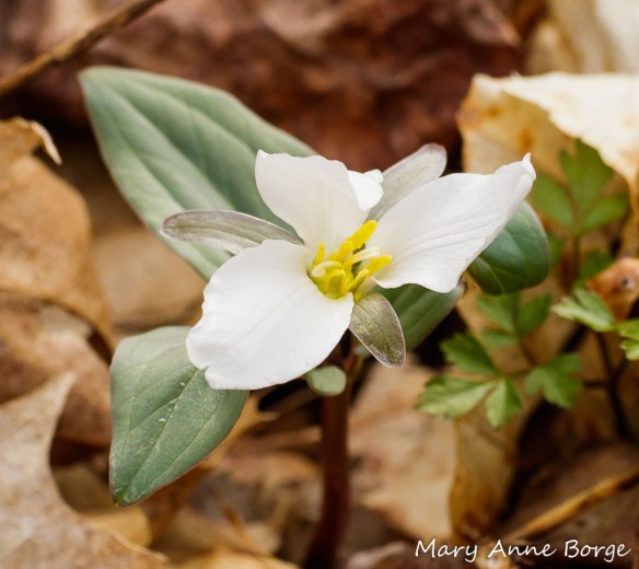 The earliest of the Trilliums to blossom, Snow Trillium (Trillium nivale), has entered its short bloom season. As you might guess, it is named for the fact that its flowers may open when snow is still present. The Latin name nivale means ‘snow white, or growing near snow’.