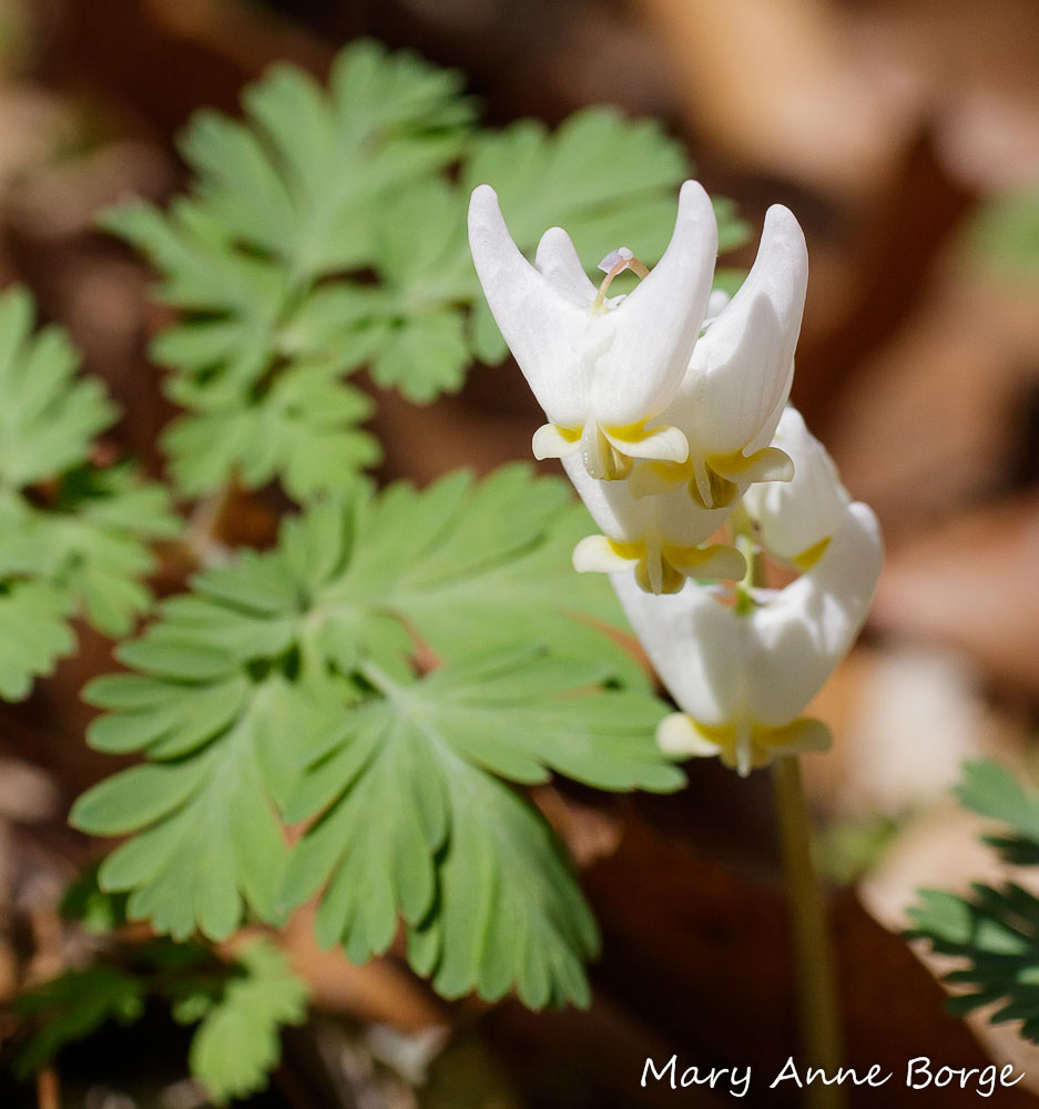 The lovely Dutchman’s Breeches (Dicentra cucullaria) is just starting to bloom, luring Bumble Bees to be their pollination facillitators. This plant’s delicate appearance gives no hint of its narcotic-packed foliage, a reliable deterrent to herbivores that would otherwise be tempted to eat it.