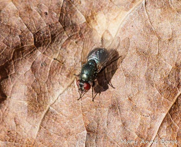 Greenbottle Fly (Lucilia sericata). This adult fly can be an effective pollinator, while its larvae are crime scene investigators’ friends, consuming dead rotting flesh or other decaying matter, a task that never goes out of season. The presence of these insects’ larvae can help determine time of death of a corpse.