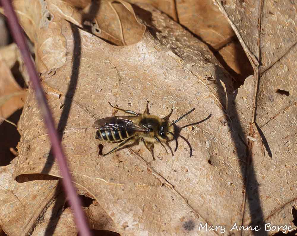 Mining Bees (Andrena sp.) were very active this week, flying just above the leaf litter, moving steadily back and forth, occasionally taking a break.
