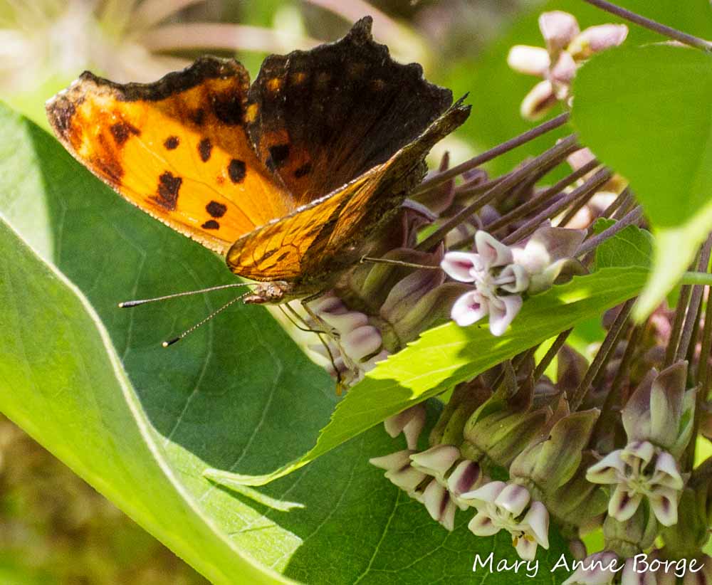 Eastern Comma on Common Milkweed (Asclepias syriaca)
