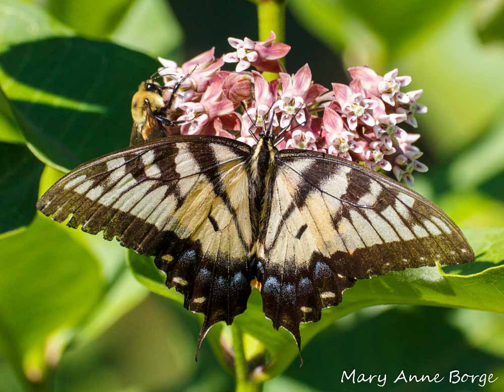 Eastern Tiger Swallowtail and Bumble Bee on Common Milkweed (Asclepias syriaca)