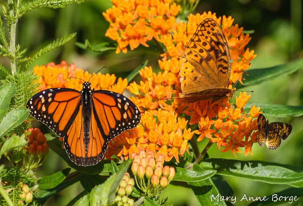 Butterflyweed with Monarch, Great Spangled Fritillary, and Pearl Crescent