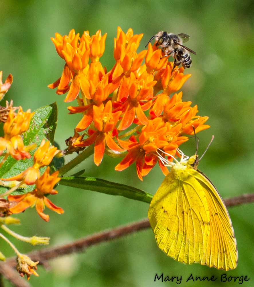 Sleepy Orange and Andrena bee on Butterflyweed (Asclepias tuberosa)