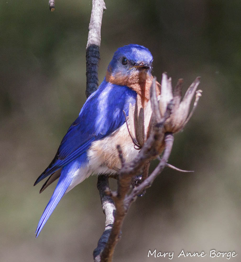 Eastern Bluebirds visit us more often in fall and winter than in spring or summer. In addition to holly berries, they love our heated birdbath, an important source of fresh water in the cold winter months.