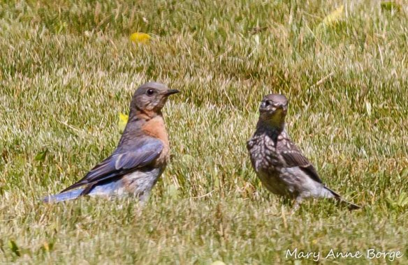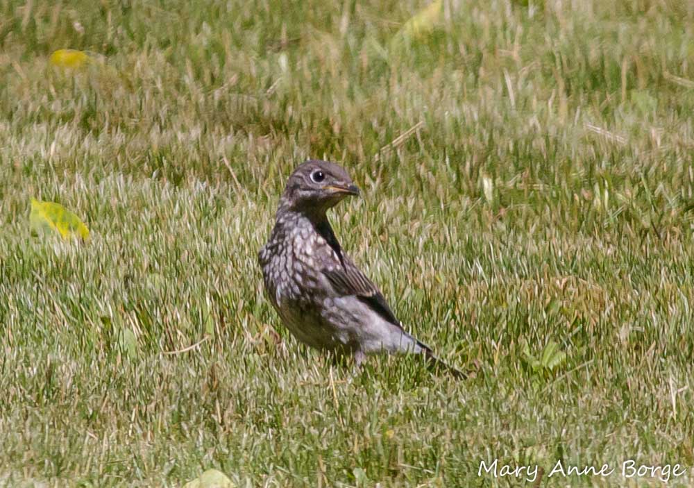 Catbirds arrived in spring and stayed through mid-fall. I saw them just about every day, usually in pairs, but sometimes in groups of four or more. Early one afternoon in August I witnessed a young Catbird being tutored on the proper way to take a bath.