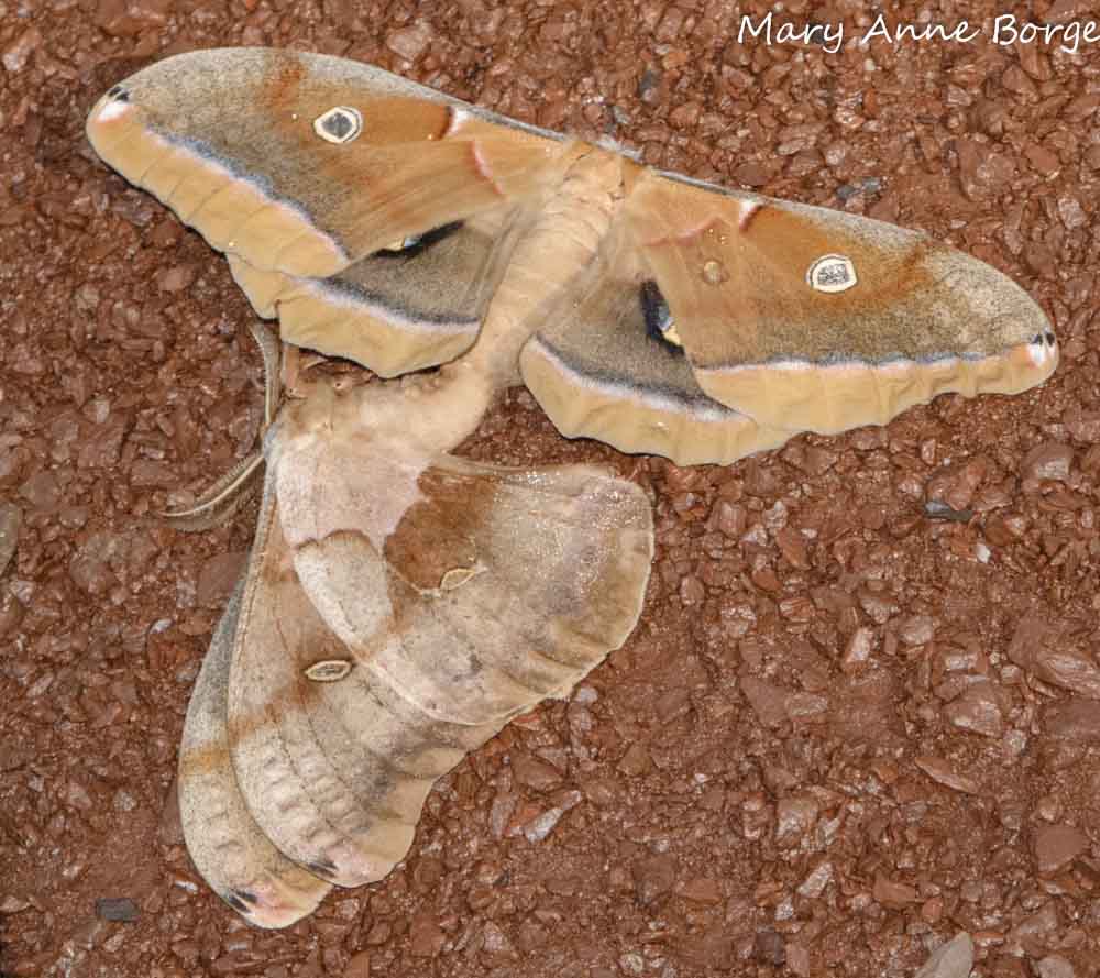 Polyphemus Moth caterpillar, looking for a place to pupate. What a plump, juicy treat for a hungry bird!