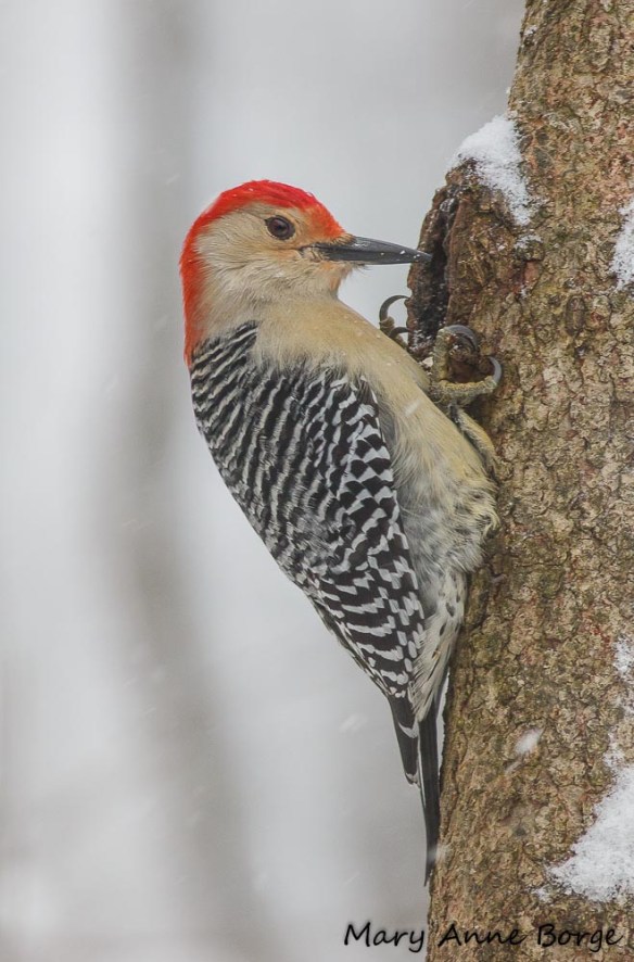 Song Sparrow with caterpillar (lunch!) surrounded by ripening fruit in a Black Cherry (Prunus serotina) tree.