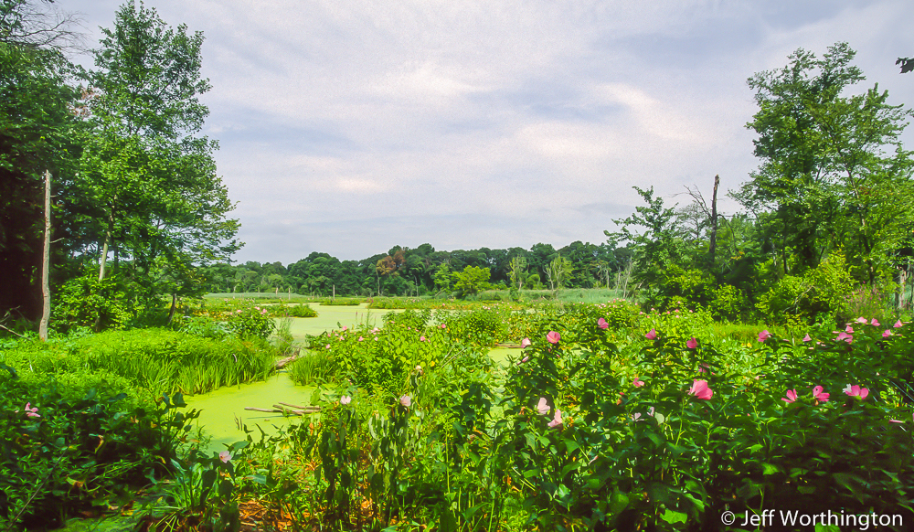 Swamp Rose Mallow (Hibiscus moscheutos) in the meadow at Bowman’s Hill Wildflower Preserve, New Hope, PA